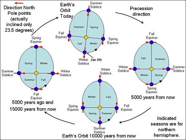 The take home from this picture is that daily insolation (at the 60th latitude) can vary by as much as 100 w/m2 or about 50 times the effect of a doubling of the CO2 level. It is also worth noting that the normal state of the earth is ice age, and thermal runaways have never occurred, even when in past geological ages, CO2 levels were over 10000 ppm.