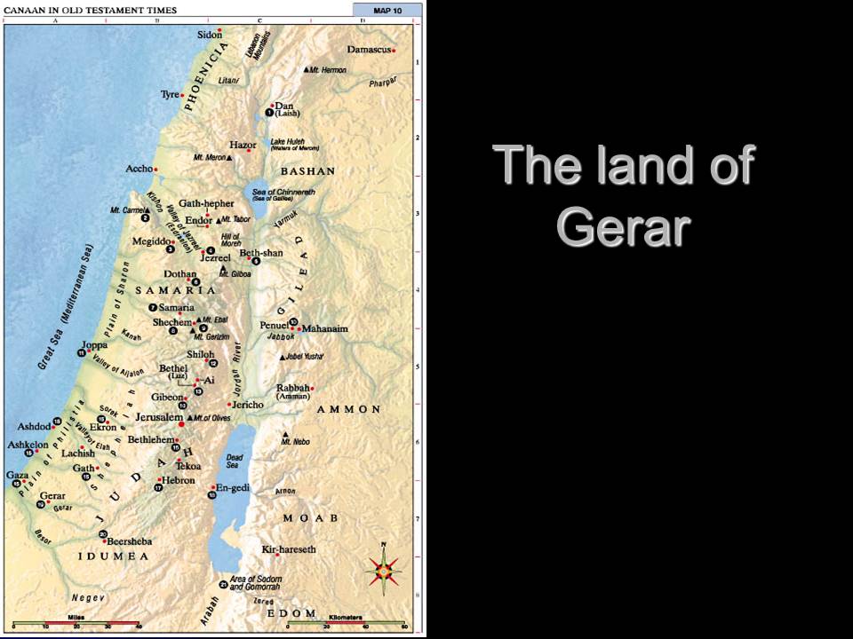 Gerar is at the Southwest part of the promised land, inland from Gaza.