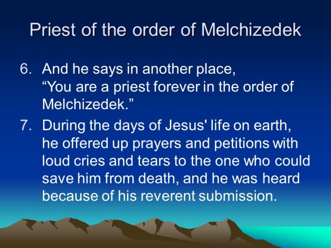 Psalm 110:4 The Lord hath sworn, and will not repent, Thou art a priest for ever after the order of Melchizedek.