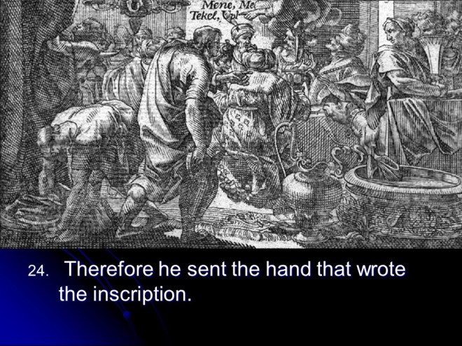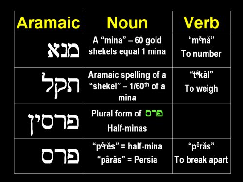 The written Aramaic and Hebrew writings recorded only the consonants. The context determined what the words meant and how they were pronounced. Writing four words on the wall without context made it impossible to really determine what the saying meant, apart from inspiration from God.