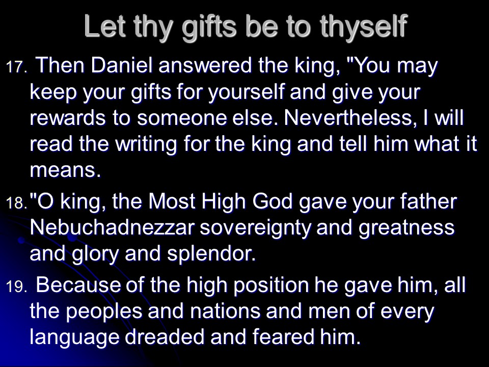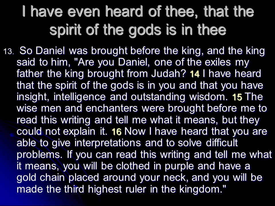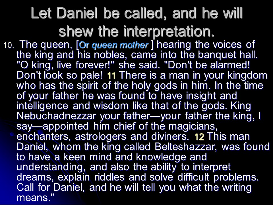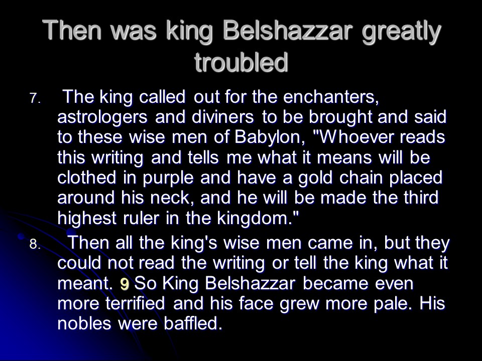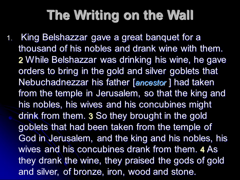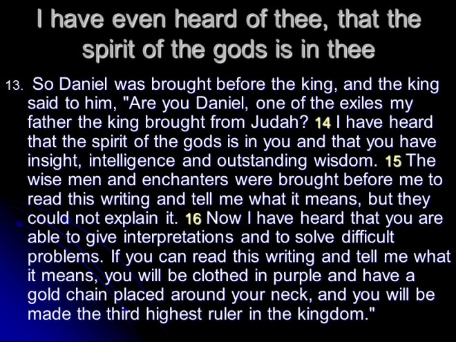“As for me, Nabonidus, king of Babylon, save me from sinning against your great godhead and grant me as a present a life long of days, and as for Belshazzar, the eldest son -my offspring- instill reverence for your great godhead in his heart and may he not commit any cultic mistake, may he be sated with a life of plenitude.”[3]
