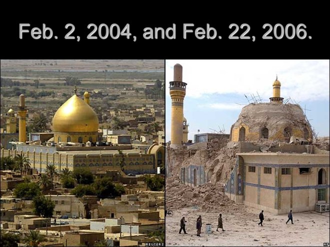 The bombing of the Golden Mosque in Samarra, 60 miles north of Baghdad, one of Iraq’s most revered Shiite shrines shows the sectarian hate between Sunnis and Shiites.