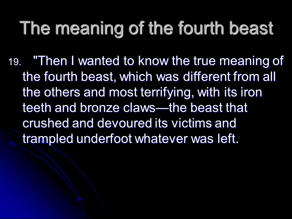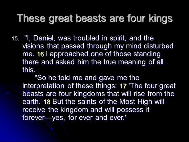 This beast was of course a vision of the Roman Empire, which, at its height encompassed the known world.
