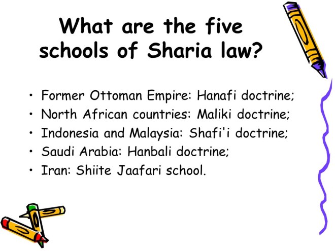 All Muslim majority countries adhere to one or more  aspects of Sharia law as defined in the Quran, but there are many schools of Islamic theology, all claiming to be the one and only true interpretation of the will of God, as defined by his messenger, Muhammad.