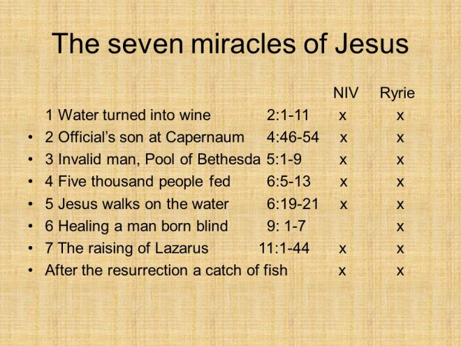 Knowing John mentioned only seven miracles my rendition of the NIV study bible omits the man born blind, washing in the pool of Siloam.