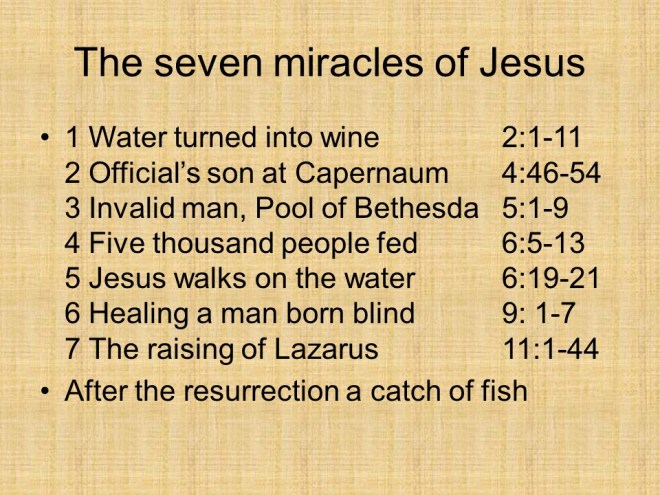 That makes it eight miracles of Jesus, seven before his resurrection and one after.