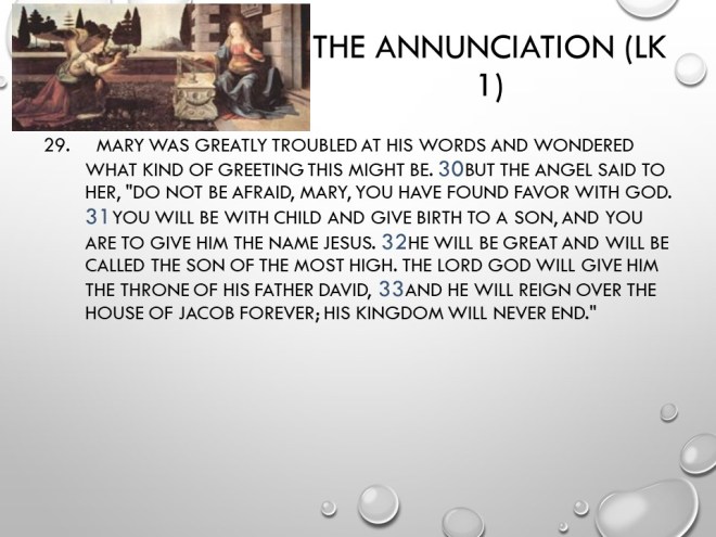 The Annunciation in Luke 1 also states that Jesus will be the Son of God, indirectly God himself coming to earth as a child.