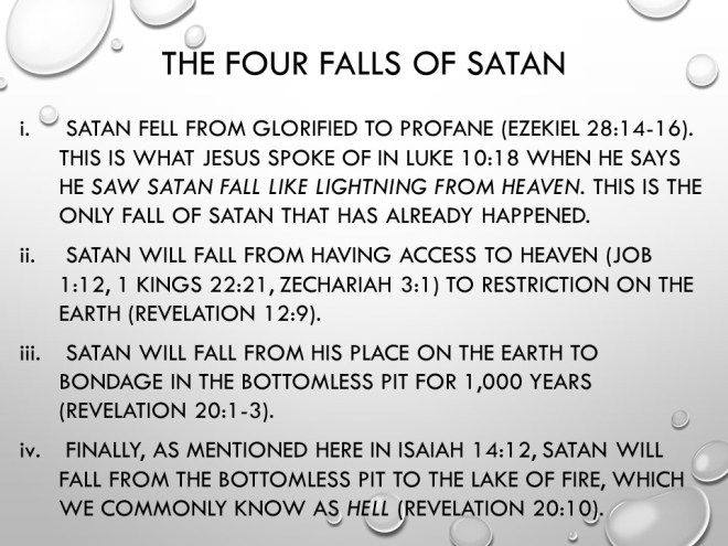 The Prophet Ezekiel also foresaw Satan being thrown out of heaven.