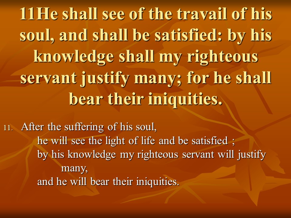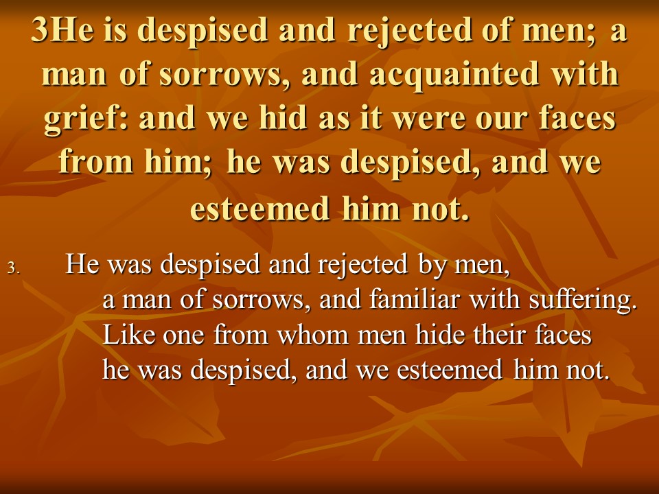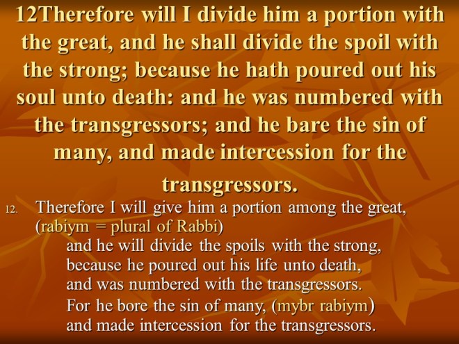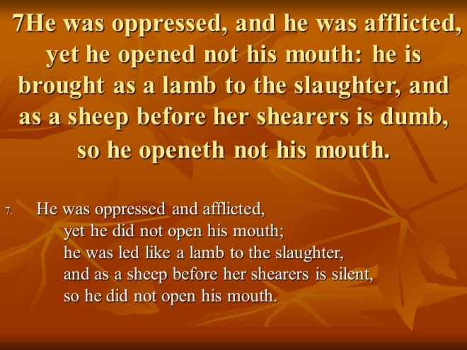 Chapter 53, the Suffering servant really begins in chapter 12, verse 13. The passage on suffering Servant is never read in Jewish Synagogues, not in the triennial reading, nor at Holy days. Up to now the LORD, through the prophet Isaiah has referred to his servant Israel, and in one case, in Isaiah 45:1 Cyrus: Thus saith the Lord to his anointed, to Cyrus, and 45:4 For Jacob my servant’s sake, and Israel mine elect, I have even called thee by thy name: I have surnamed thee, though thou hast not known me.