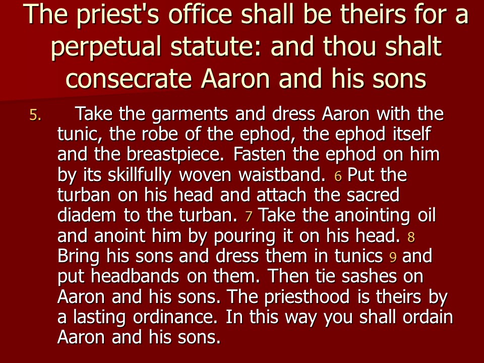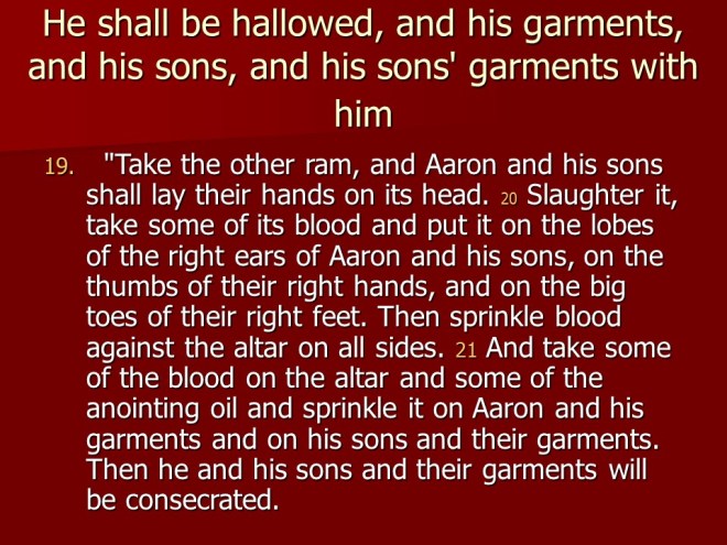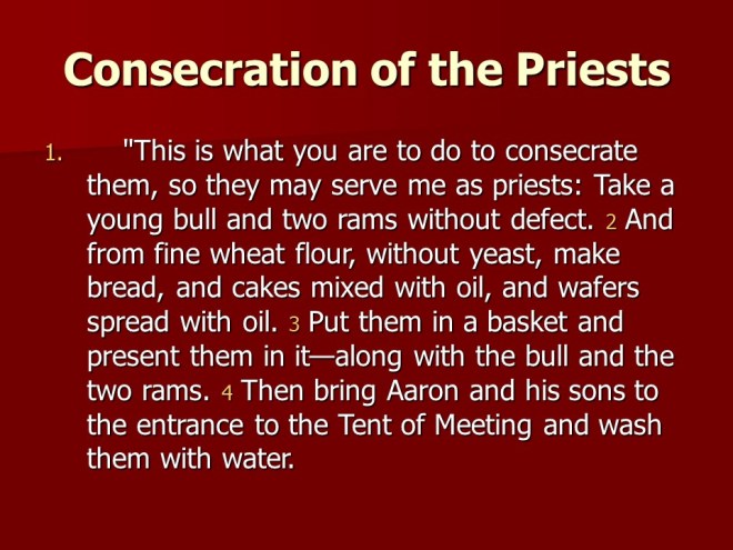 Exodus 29, consecration of the Priests.
