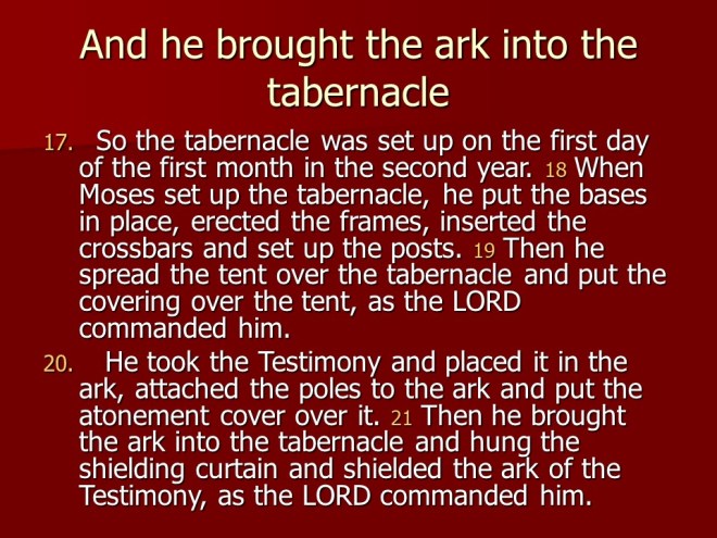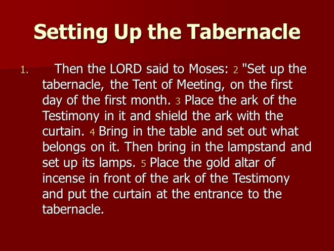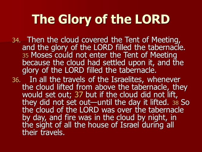 Exodus 40, setting up the Tabernacle, Glory to the LORD!