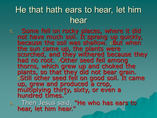 Mark 4, Jesus’ parables, the Sower, a Lamp on a Stand, the growing Seed, the Mustard Seed, Jesus calms the Storm.