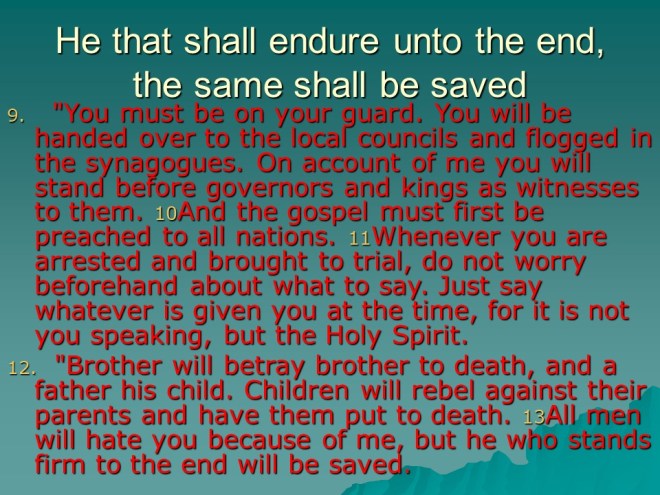 Mark 13, Signs of the End of the Age, the Great Tribulation, the Coming of the Son of Man, the Fig Tree, the Day and Hour unknown.