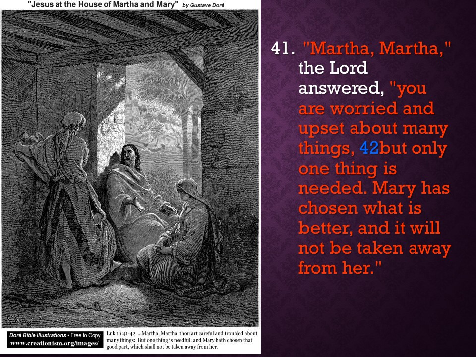 Luke 10, Jesus sends out the seventy-two, they return with joy, the Parable of the Good Samaritan, with Martha and Mary.