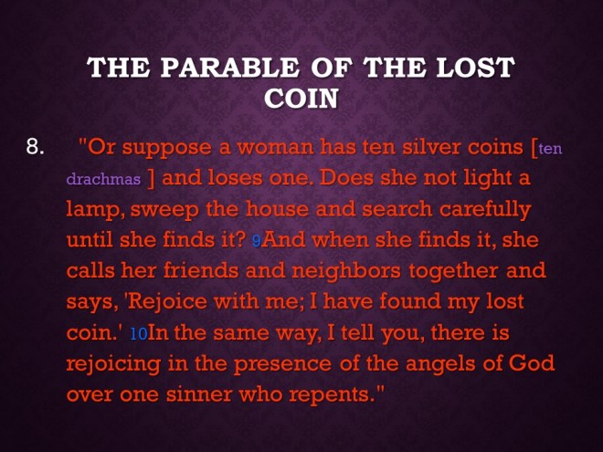 Luke 15, three parables, the lost sheep, the lost coin, the lost son.