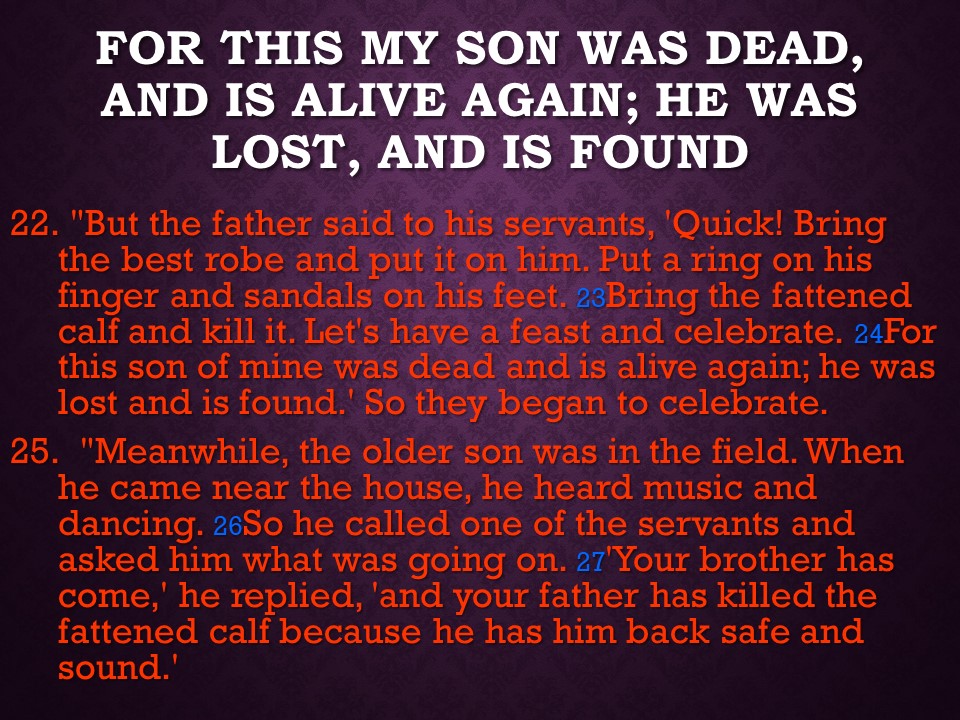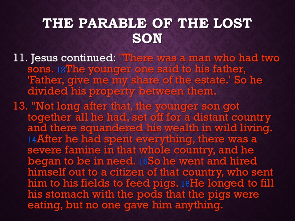 Luke 15, three parables, the lost sheep, the lost coin, the lost son.