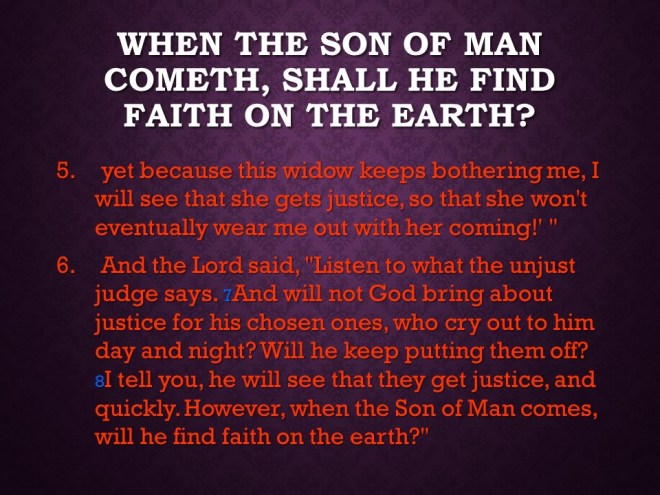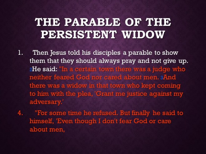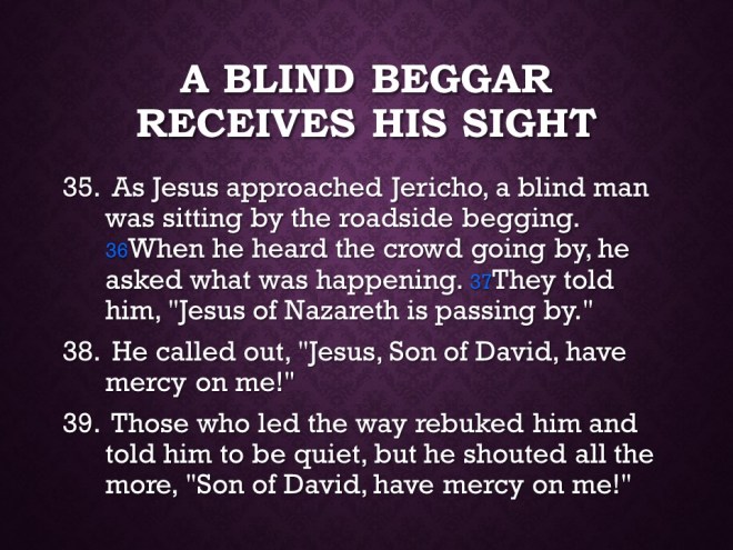 Luke 18, the Parables of the Persistent Widow, the Pharisee and the Tax Collector, Jesus blesses the Little Children, the Rich Young Ruler, all Things are possible with God, Jesus predicts His Death, a Blind Beggar receives Sight.