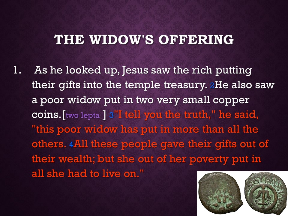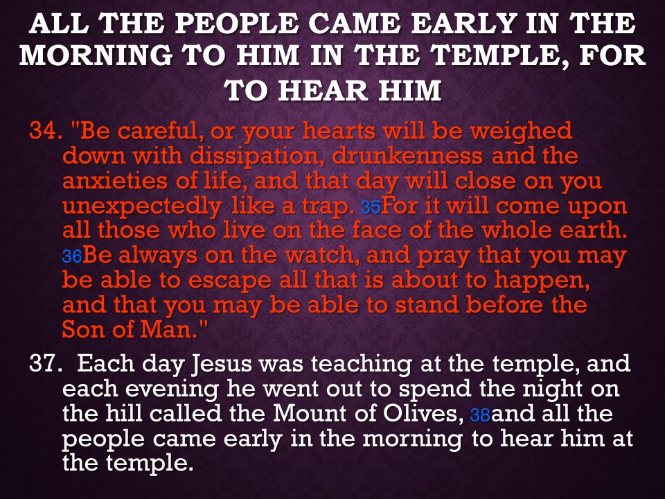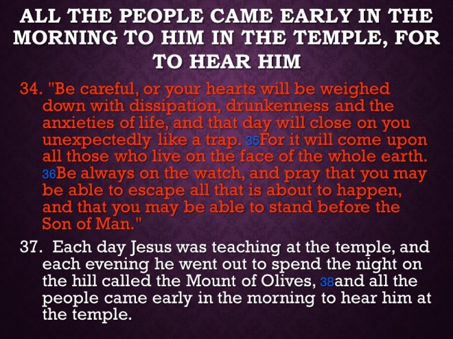 Luke 21, The Widow’s two Mites, the Signs of the Times, the End of the Age, the Destruction of Jerusalem, the Coming of the Son of Man, the Parable of the Fig Tree.