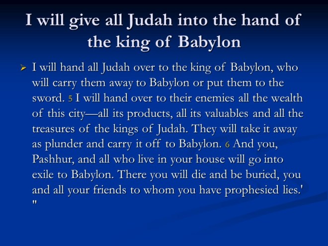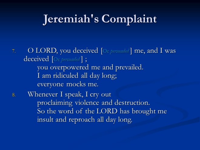 Jeremiah 20, the Word of God to Pashhur, Jeremiahs’ Complaint.