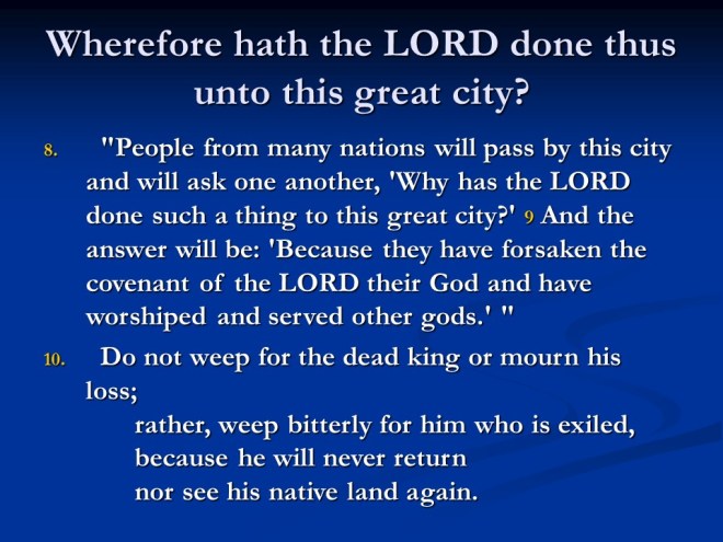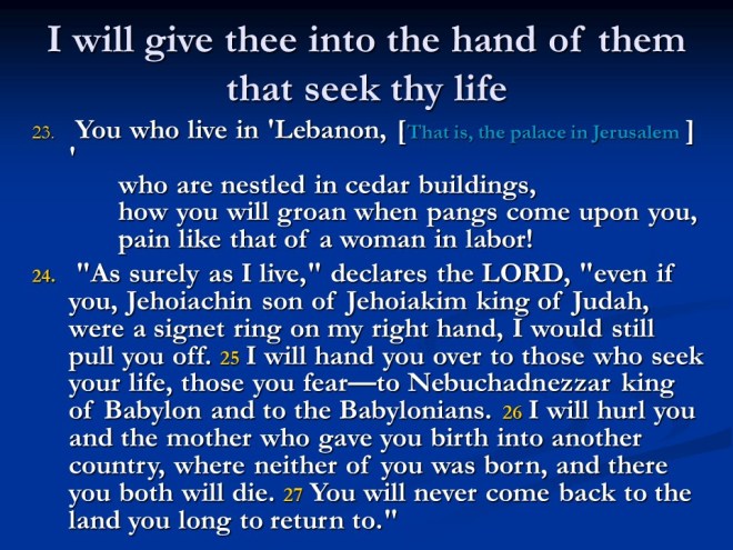 Jeremiah 22, messages to the House of David, the Sons of Josiah, the end of the Davidic line with Jehoiachin.