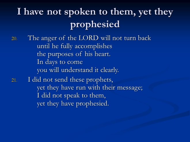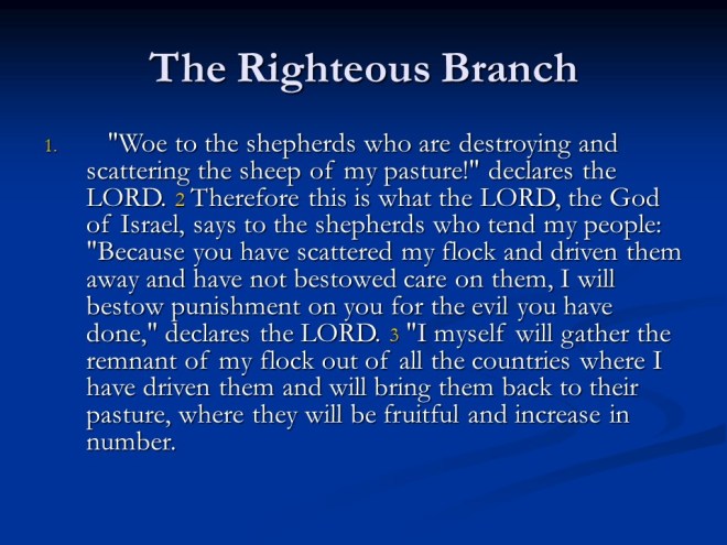 Jeremiah 23, the Righteous Branch, lying Prophets, false Prophets, empty Oracles.