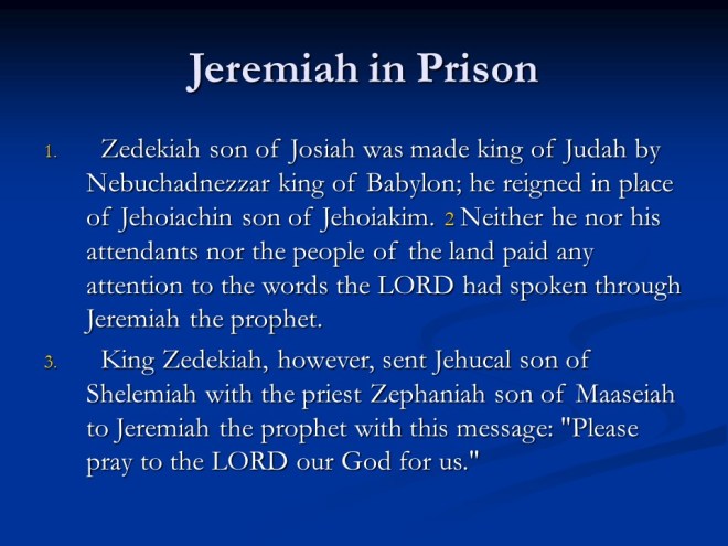 Jeremiah 37, Zedekiah’s vain Hope, Jeremiah in Prison.