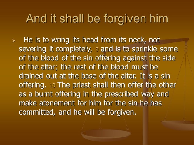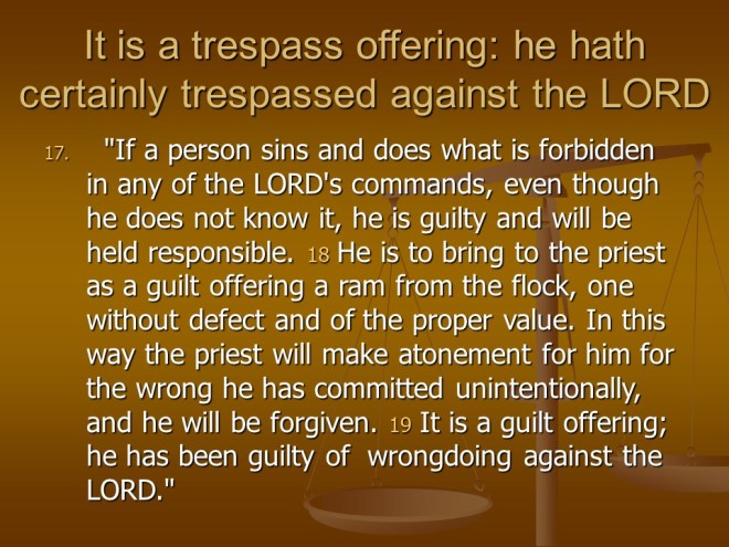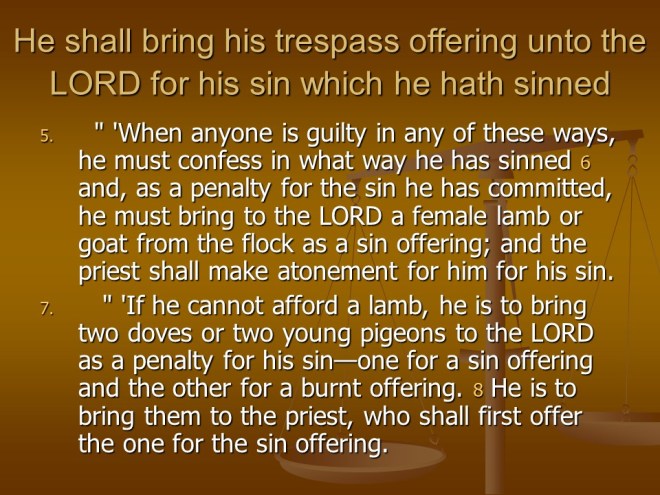 Leviticus 5, the Sin Offering, the Guilt Offering.