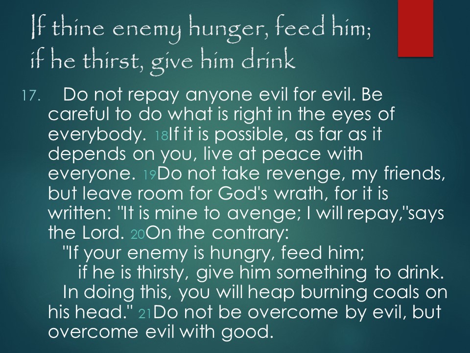 Romans 12, Living Sacrifices to God, Serve God with Spiritual Gifts, Behave like a Christian, no Vengeance.