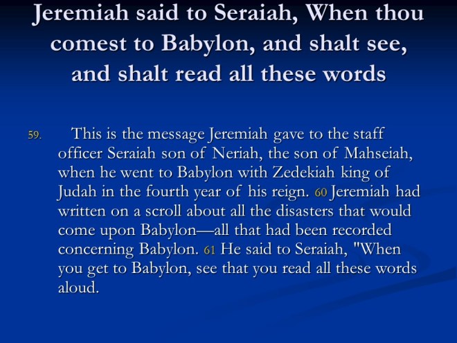 Jeremiah 51, the Destruction of Babylon, Jeremiah’s Command to Seraiah.