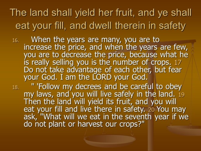 Leviticus 25, The Sabbath Year, The Year of the Jubilee, Provisions for the Sabbath Year, Property Redemption, Lending to the Poor, the Law concerning Slavery.