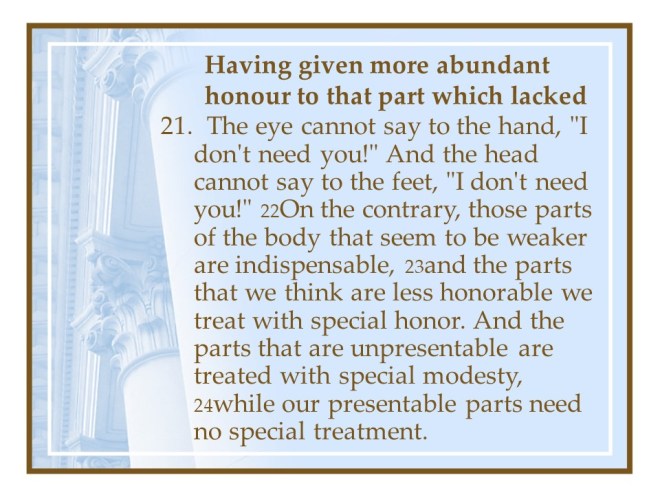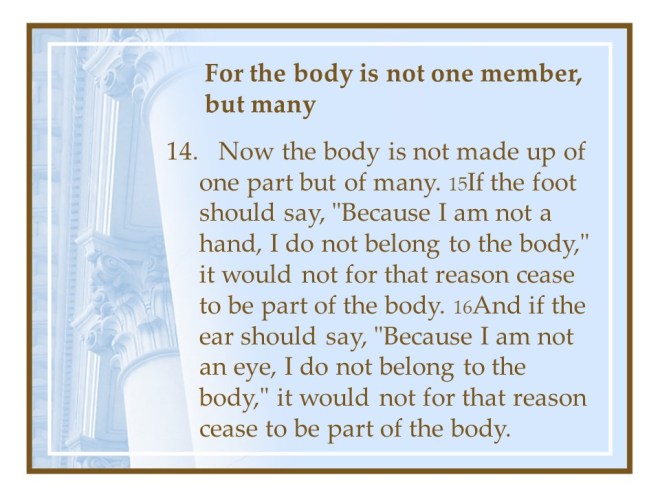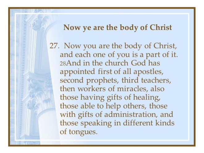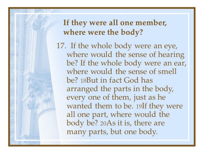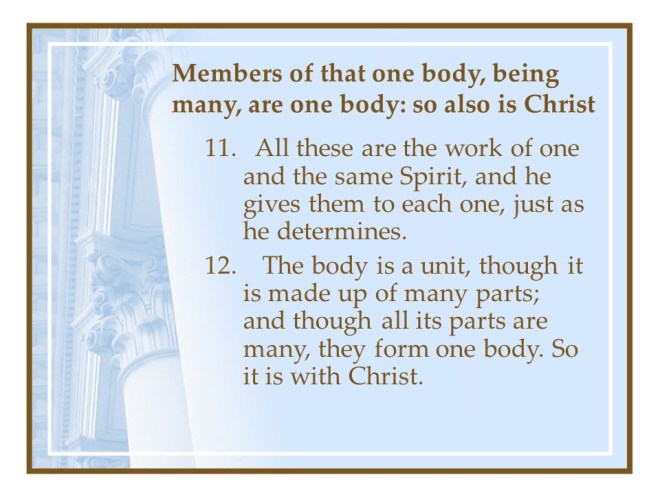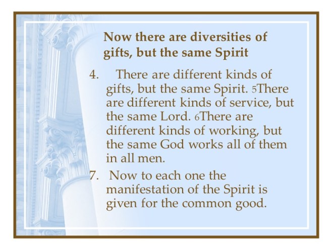 1 Corinthians 12, Spiritual Gifts, Unity in Diversity, One Body in Christ, One body and many Parts.