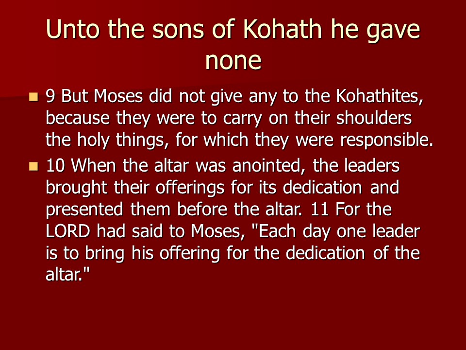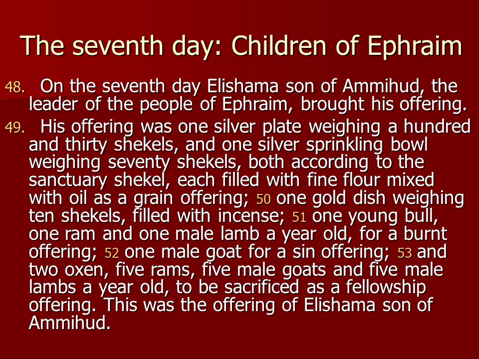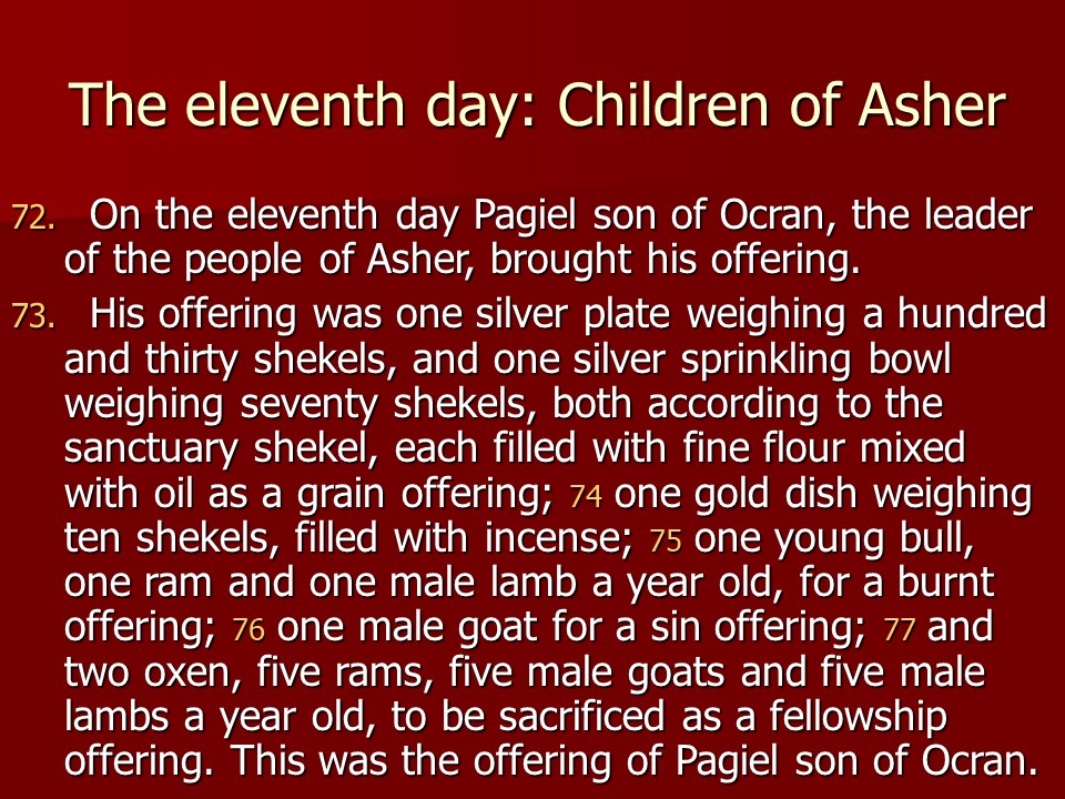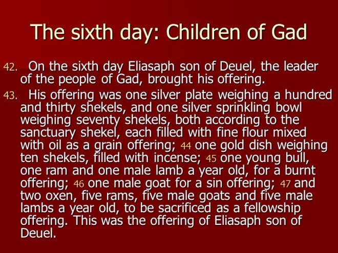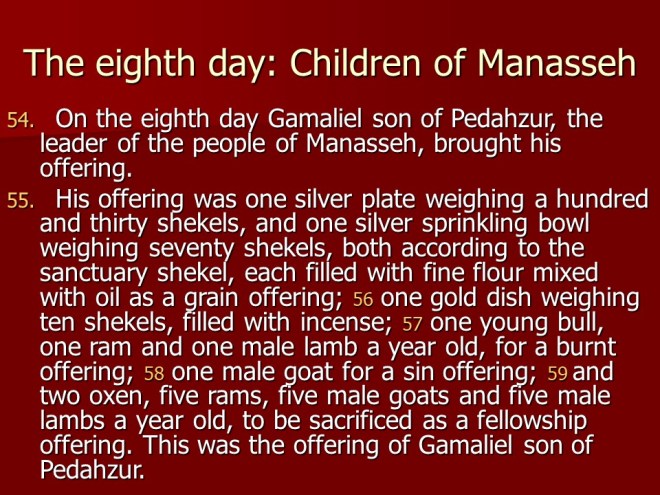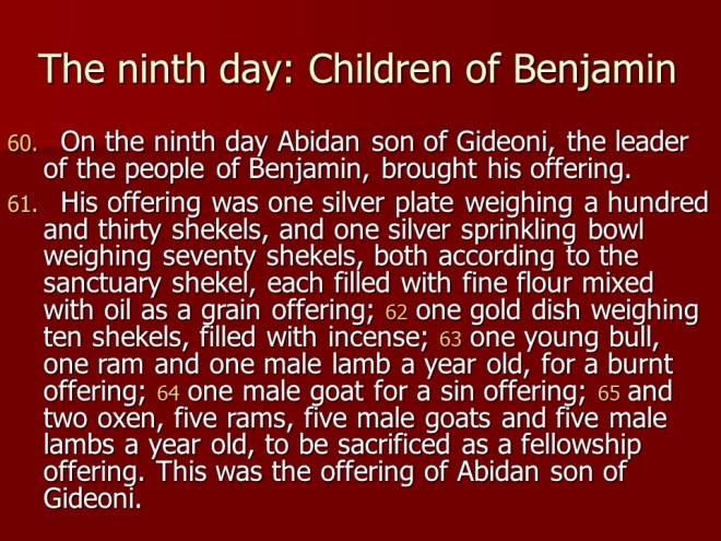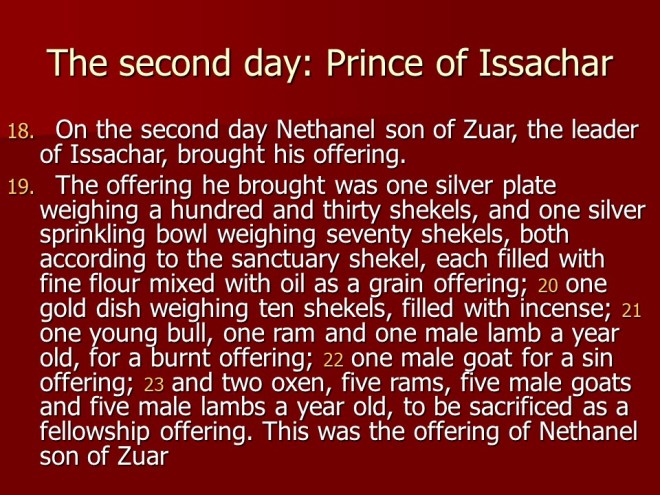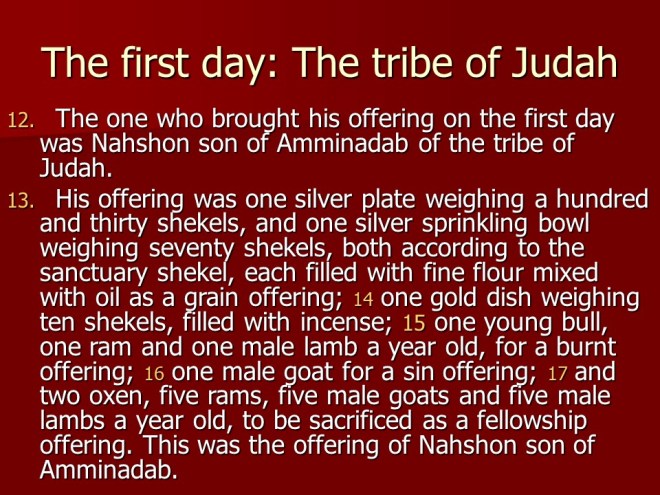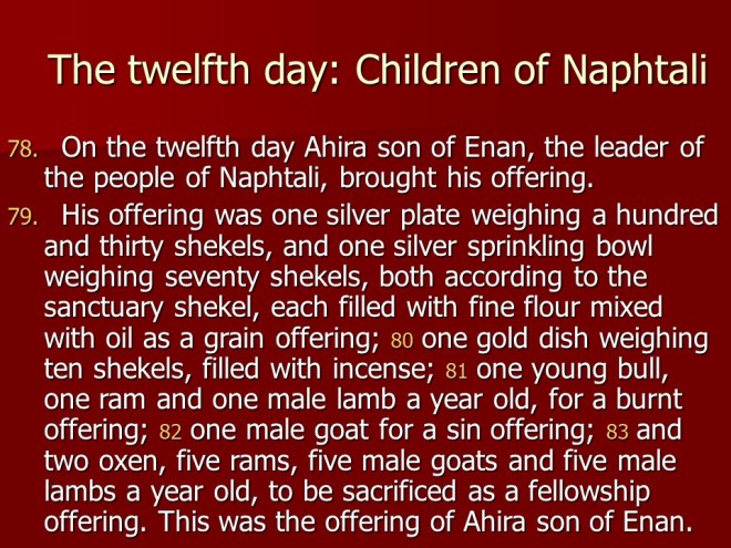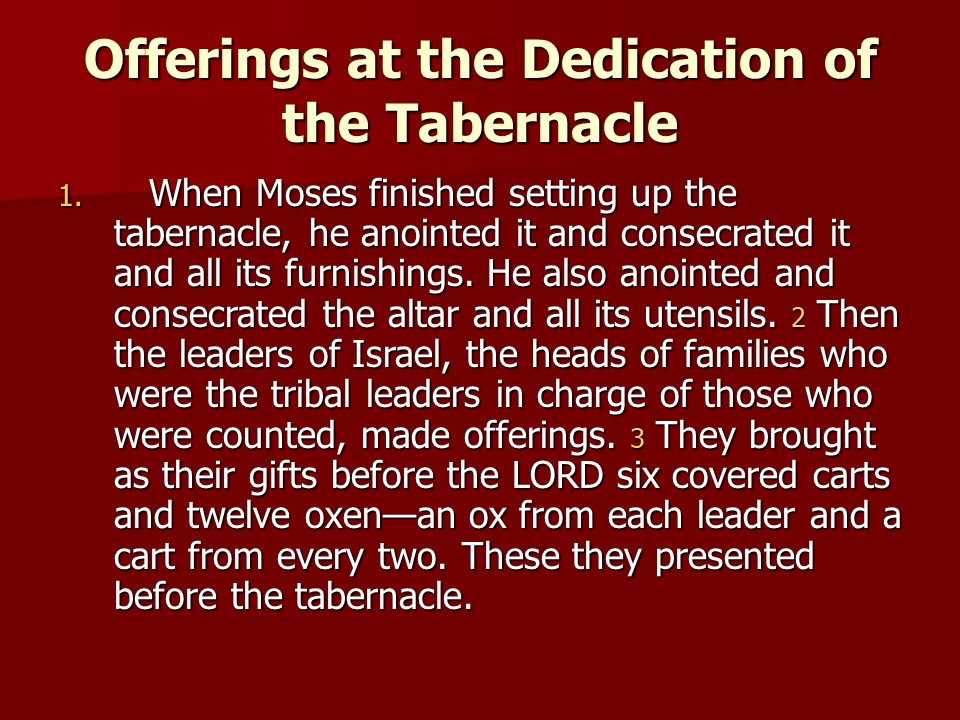Numbers 7, Offerings at the Dedication of the Tabernacle.
