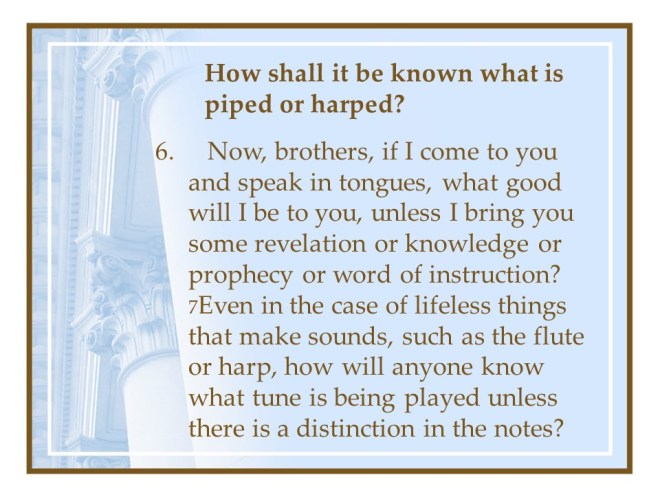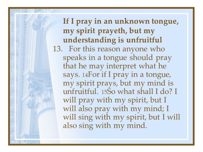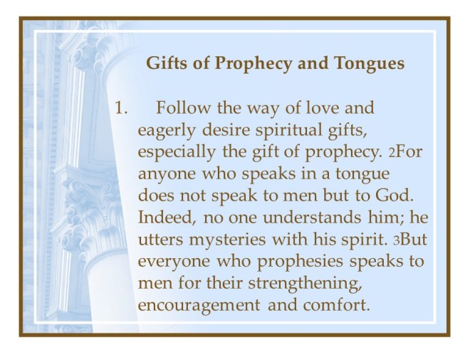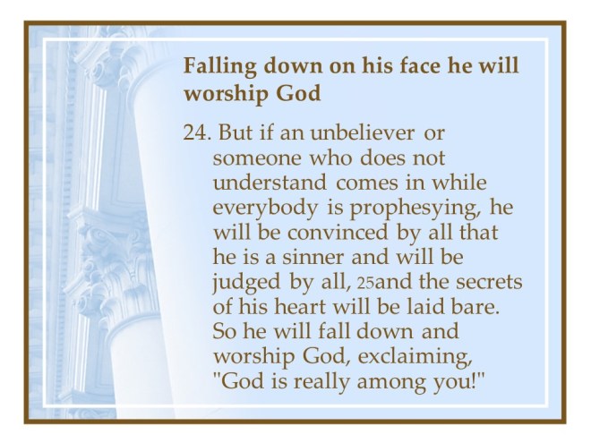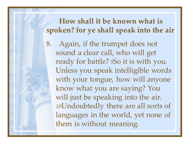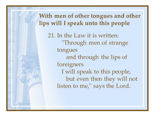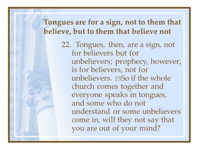1 Corinthians 14, Prophecy and Tongues, Tongues to be Interpreted, Tongues a sign to Unbelievers, Order in the Church!