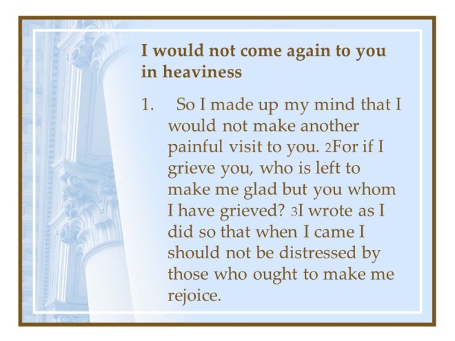2 Corinthians 2, No more Sorrowful, Forgive the Offender, Triumph in Christ.