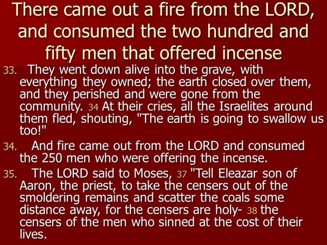 Numbers 16, Rebellion against Moses and Aaron, the People Complain.