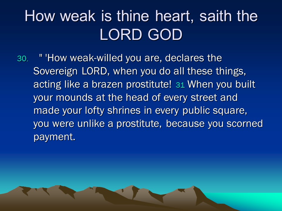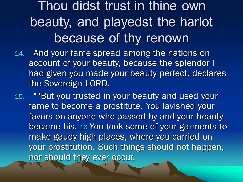 Ezekiel 16, God’s Love for Jerusalem, Jerusalem’s Harlotry, Jerusalem’s Adultery, Jerusalem’s Lovers Abuse of Her, More Wicked than Samaria and Sodom.