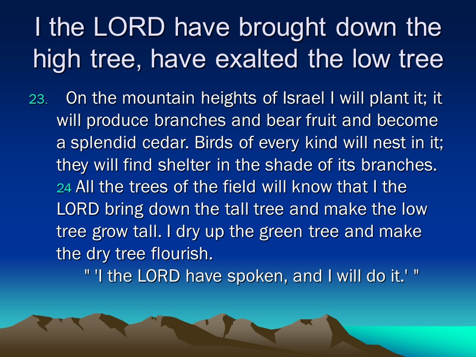 Ezekiel 17, The Eagles and the Vine, Israel will be Exalted.