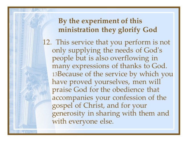 2 Corinthians 9, Administering the Gift, The Cheerful (hilarious) Giver.