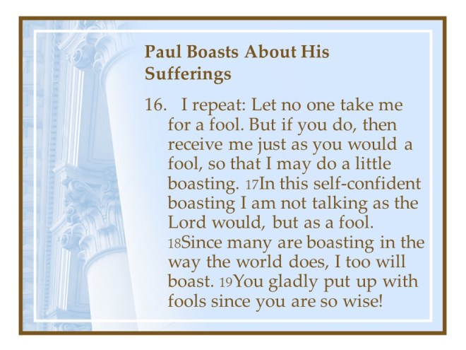 2 Corinthians 11, Concern for Faithfulness, Paul and False Apostles, Reluctant Boasting, Suffering for Christ.