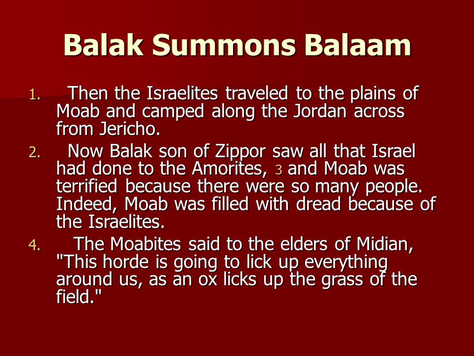 Numbers 22, Balak sends for Balaam, Balaam’s Donkey and the Angel.