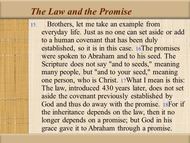 Galatians 3, Justification by Faith, The Law brings a Curse, The Everlasting Promise, Purpose of the Law, Sons and Heirs.
