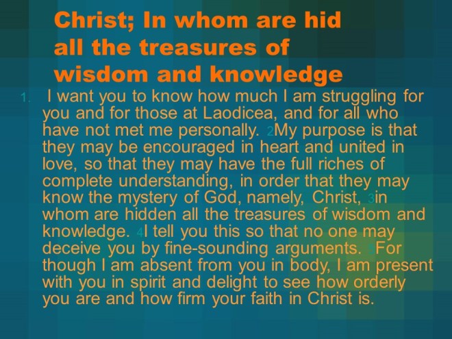 Colossians 2, Not Philosophy but Christ, Not Legalism but Christ.
