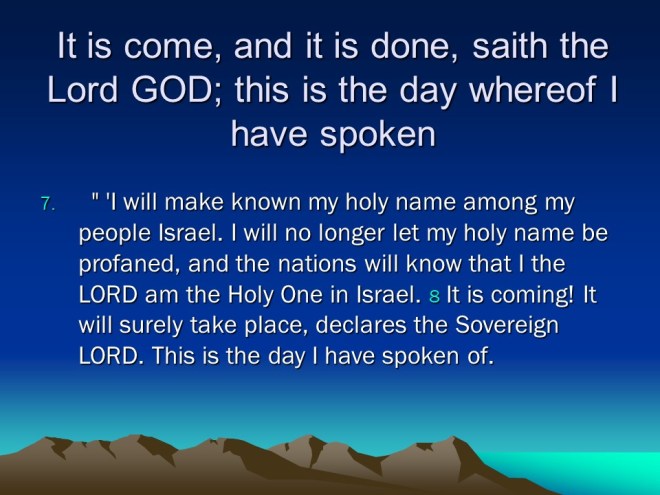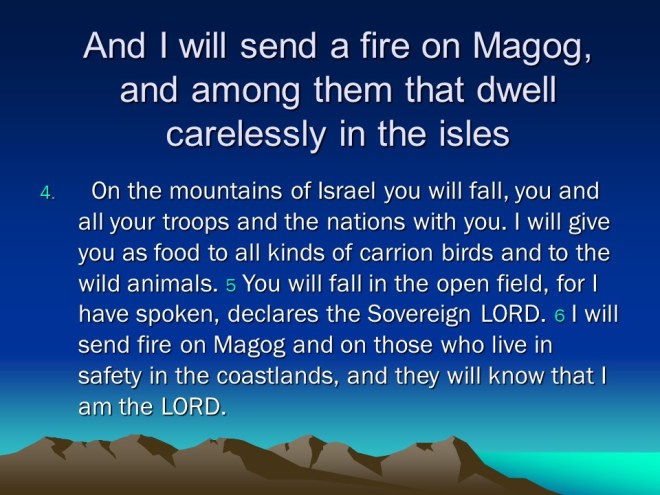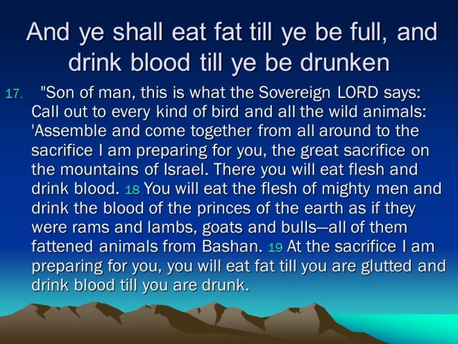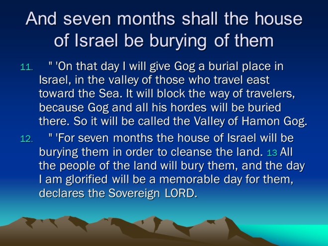 Ezekiel 39, Gog’s Armies Destroyed, Burial of Gog, a Triumphant Festival, Israel restored to the Land.