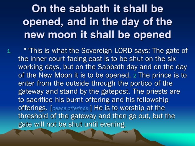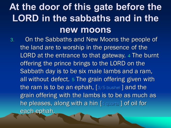 Ezekiel 46, Manner of Worship, the Prince and Inheritance Laws, how Offerings were to be Prepared.