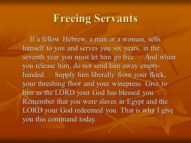 Deuteronomy 15, Debts Canceled every Seven Years, Generosity to the Poor, Release of Bondservants, Firstborn Animals.