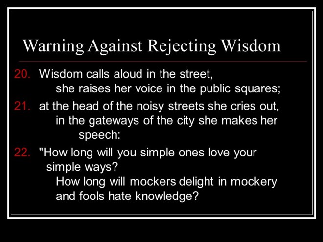 Proverbs 1, The Beginning of Knowledge, Shun Evil Counsel, The Call of Wisdom.