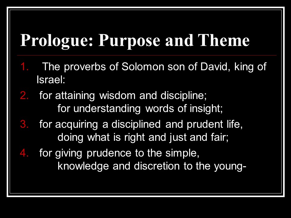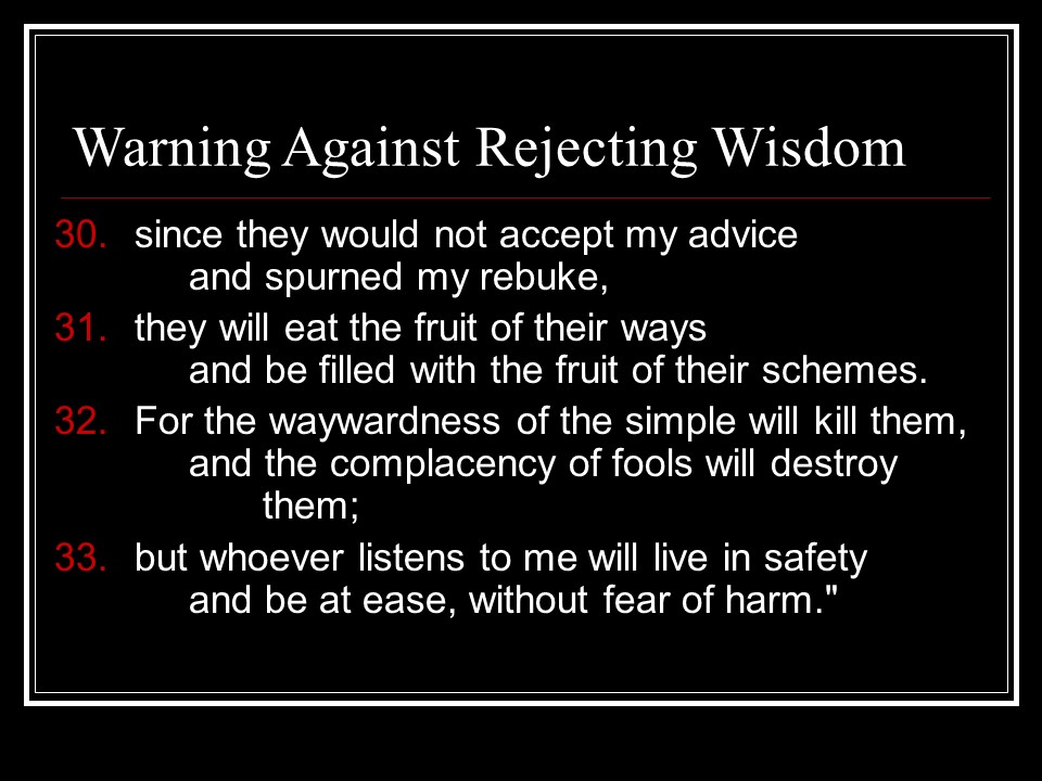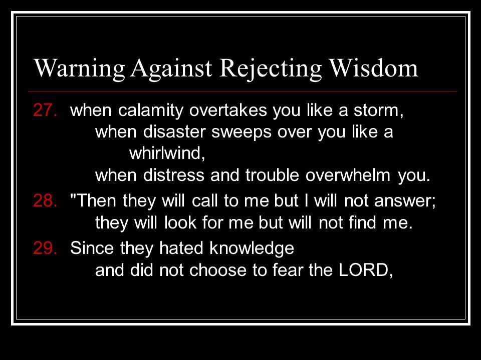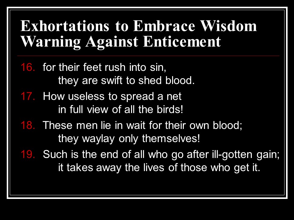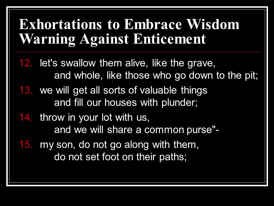 Proverbs 1, The Beginning of Knowledge, Shun Evil Counsel, The Call of Wisdom.