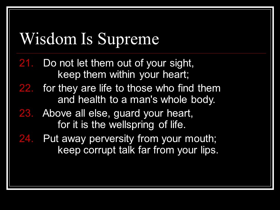 Proverbs 4, Security in Wisdom.
