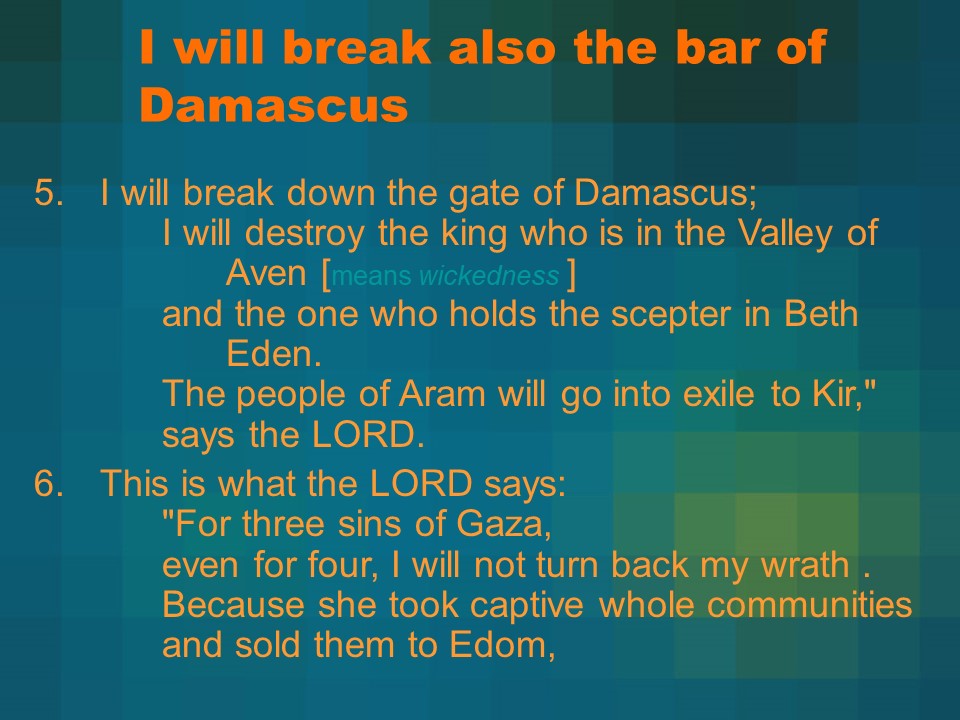 Amos 1, Judgment on the Nations, Tyre and Sidon.