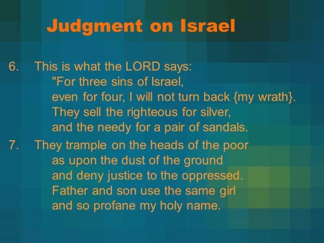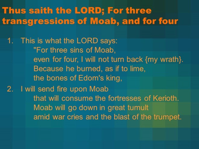 Amos 2,Judgment on Moab, Judgment on Judah, Judgment on Israel.